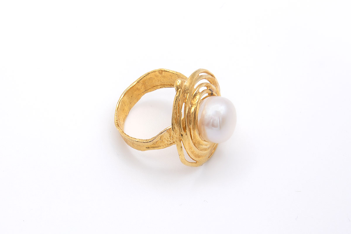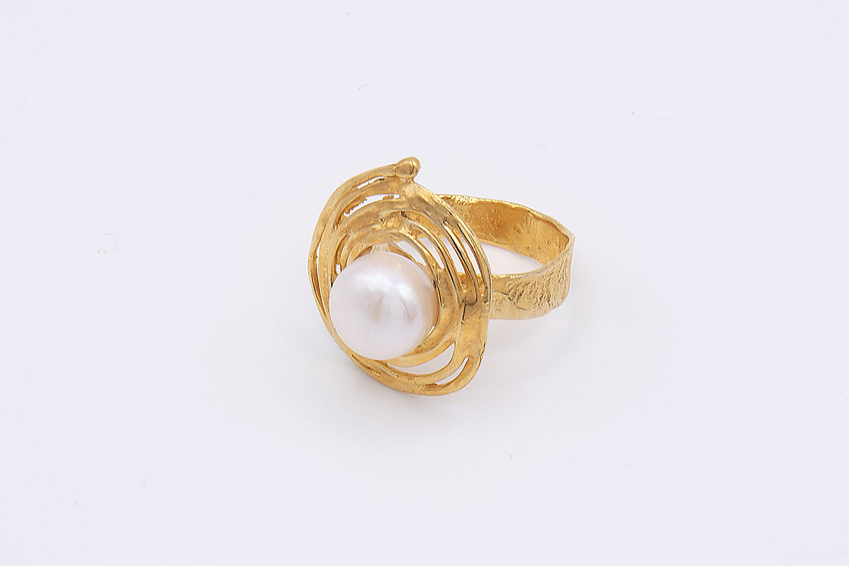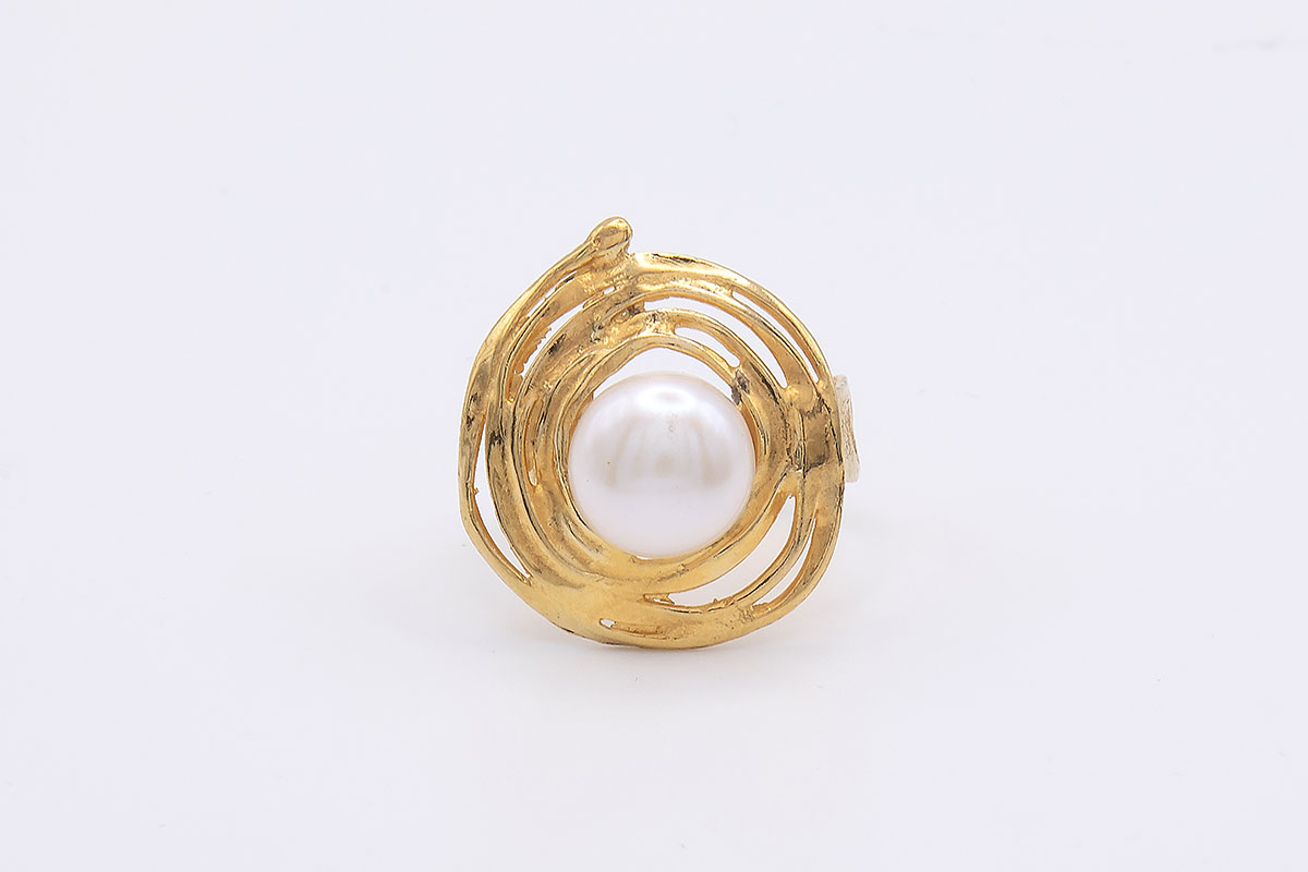 Anillo plata de ley chapado en oro de 18K con perla