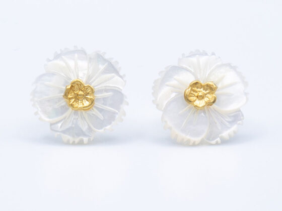 Pendientes  flor de plata de ley chapados en oro de 18K y nácar
