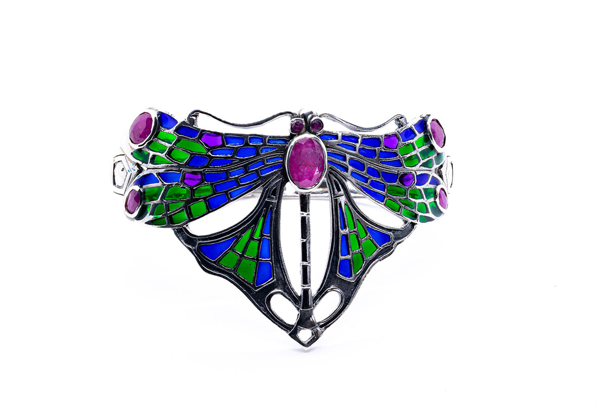 Pulsera de plata Art Decó con Rubies y esmalte.