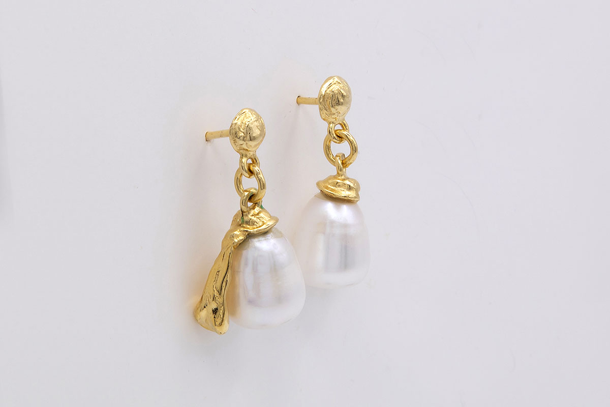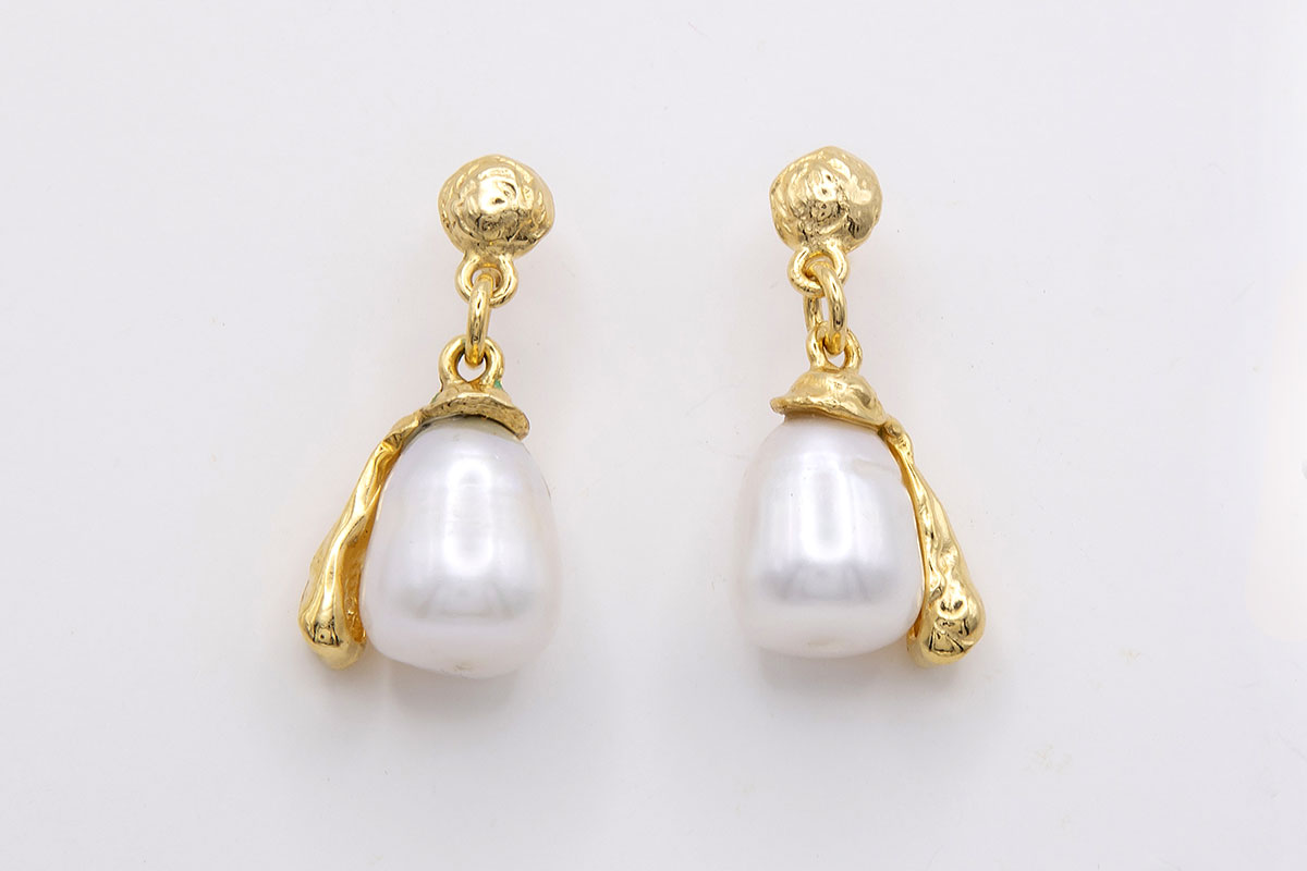 Pendientes de plata de ley chapados en oro de 18K con perlas