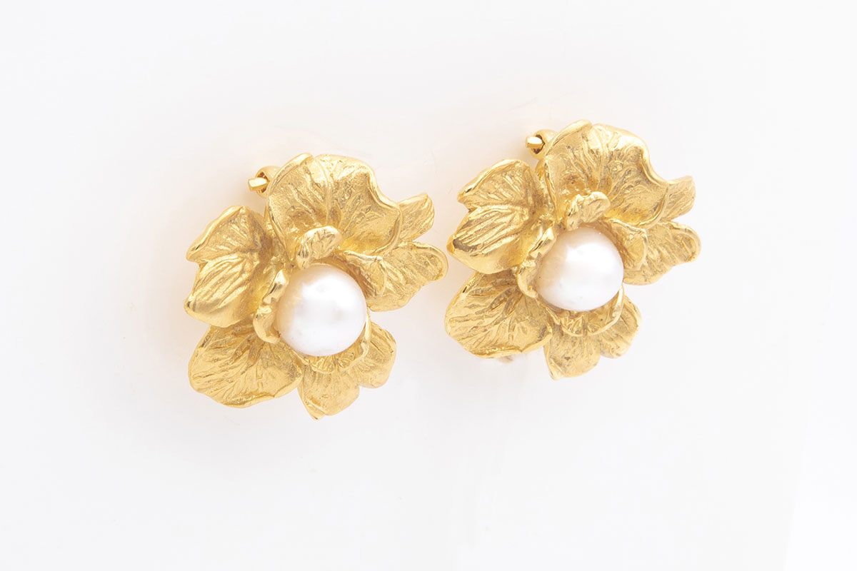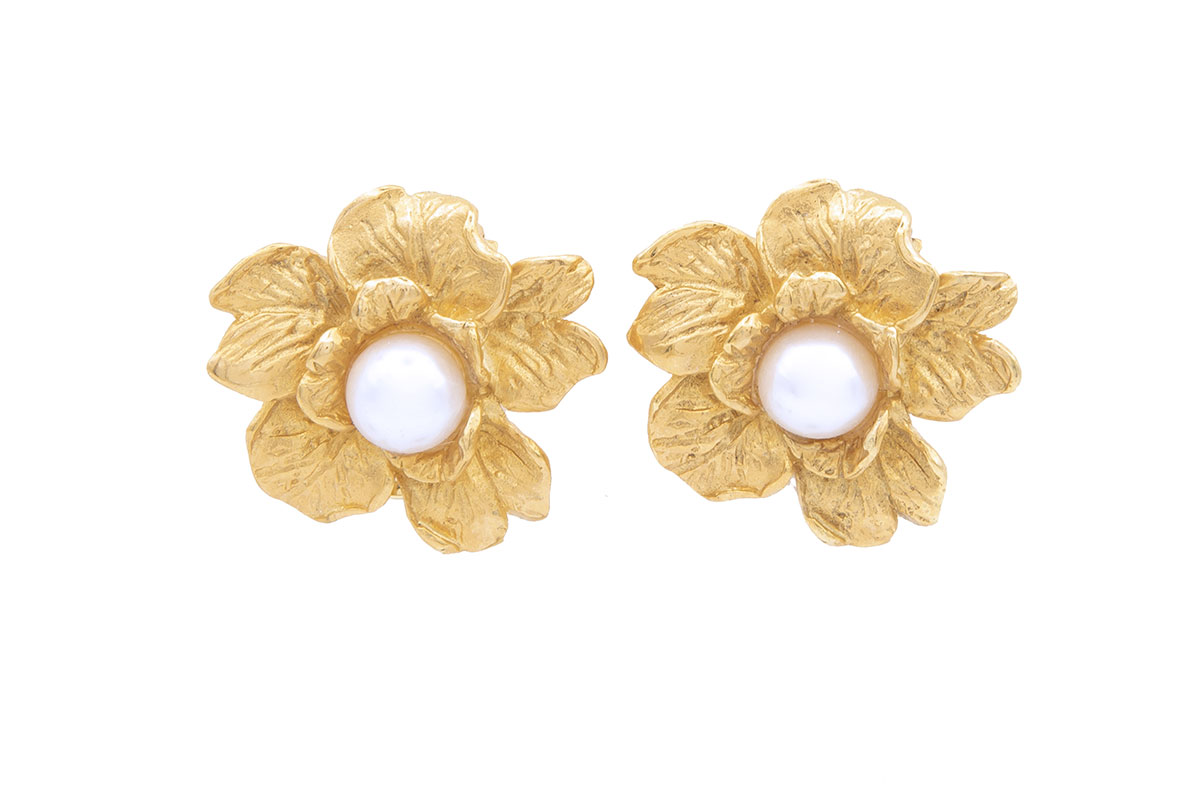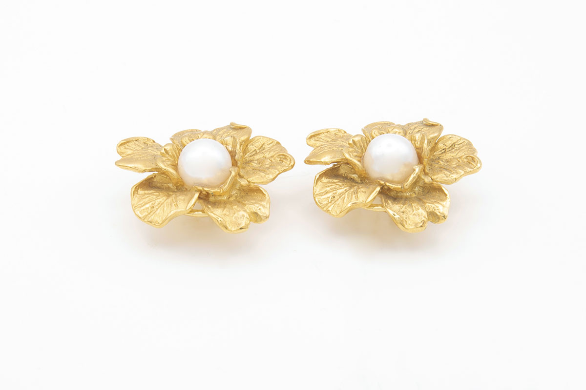 Pendientes flor de plata de ley chapados en oro de 18K con perlas